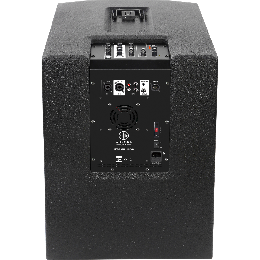 AURORA STAGE 1508 – Sistema Array Activo 15″ 3600W con Bluetooth es un sistema de sonido activo 1.1 tipo array vertical que combina un subwoofer de 15″ y ocho altavoces full-range de 3″ para ofrecer una cobertura amplia y un sonido nítido en todo tipo de eventos.
