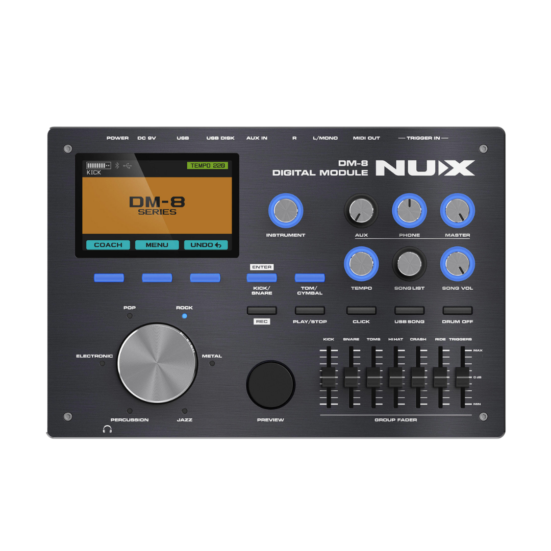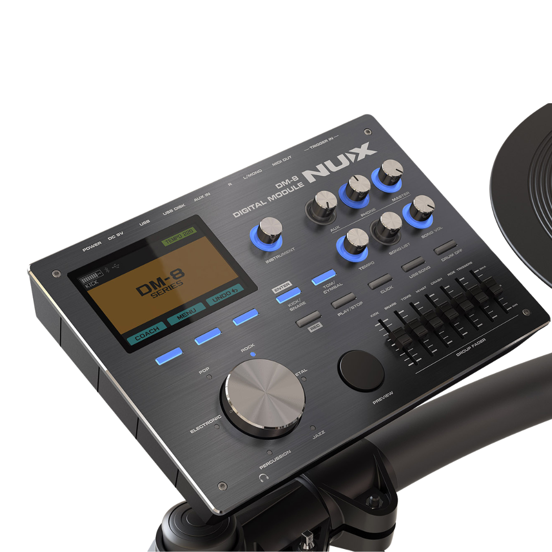 Conviértete en el baterista que mereces ser. La NUX DM-8 está lista para acompañarte en cada ensayo, en cada escenario, y en cada grabación.
