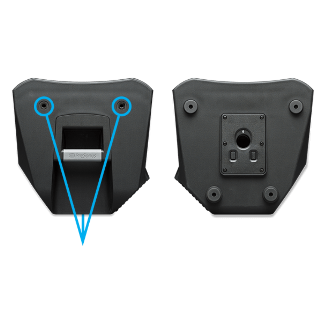 El gabinete de plástico moldeado de la AIR12 puede montarse de varias maneras, proveyendo una tremenda versatilidad. El gabinete multi-ángulo incluye patas antiderrapantes de hule en la parte inferior para uso vertical de refuerzo de sonido, así como patas de hule antiderrapante a los costados para aplicaciones de monitor. Instala la bocina usando los puntos para volado M10, móntala en paredes o vigas usando la horquilla, o apílala en el suelo para aplicaciones portátiles. Móntala en un tripié o sobre un subwoofer de la serie AIR usando un sub-mástil opcional. La montura integrada de dos posiciones para mástil te permite dirigir el nivel de la bocina a una inclinación hacia debajo de 7.5š. Y la AIR12 es fácil de transportar, gracias a su agarradera superior.