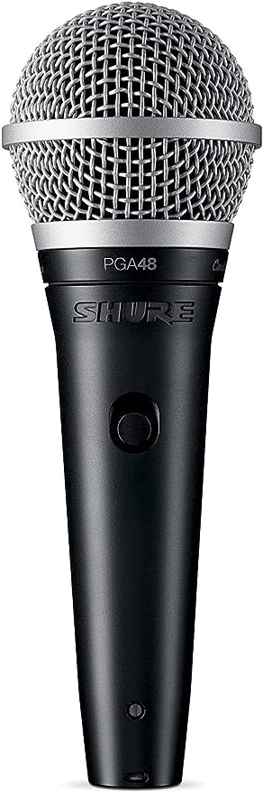El PGA-48 es un micrófono vocal de calidad profesional, con un diseño industrial actualizado que presenta un acabado metálico de color negro y una rejilla plateada clásica.
