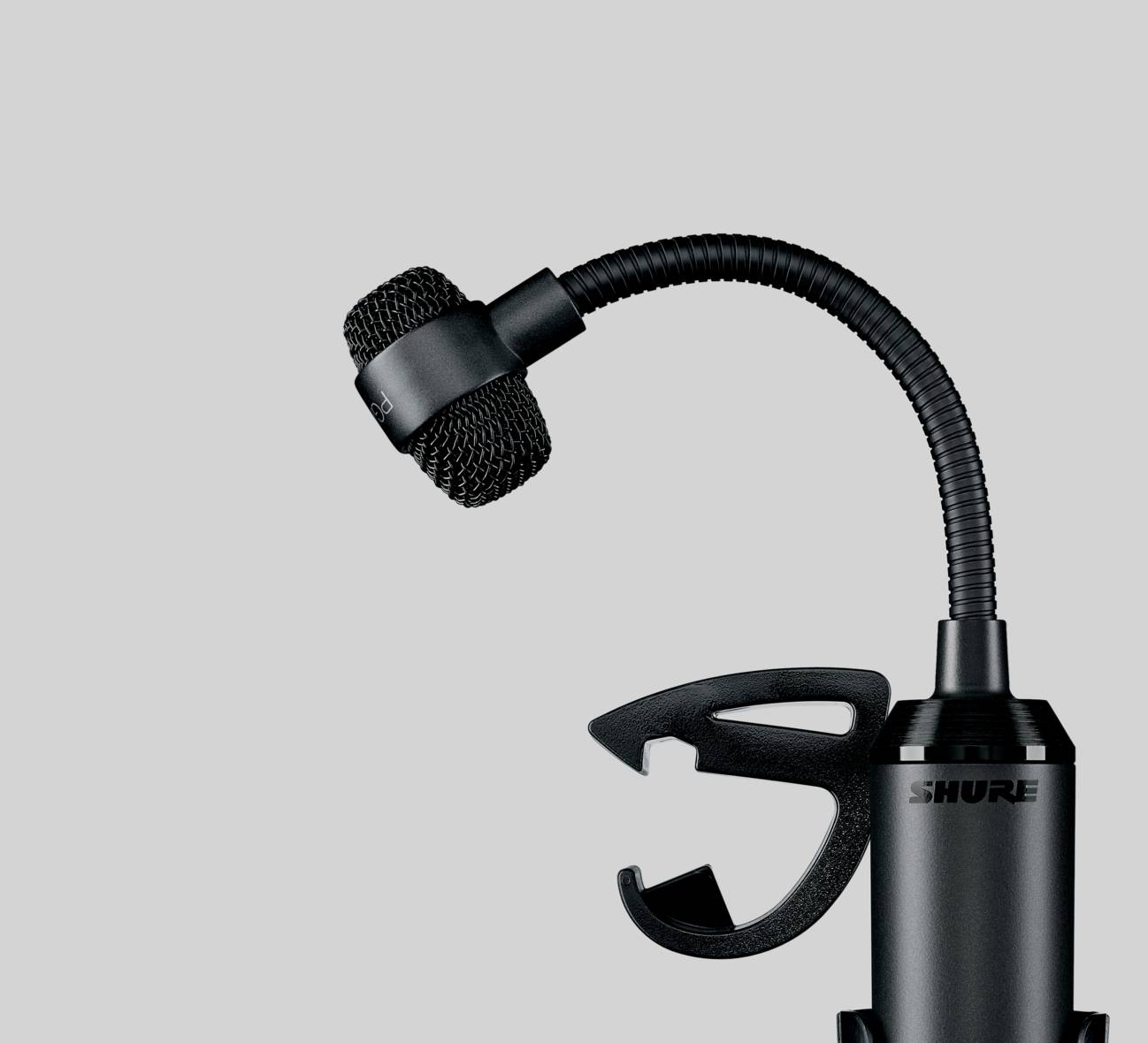 Micrófono de condensador cardioide para batería para reproducir de forma nítida la batería y los instrumentos de percusión. Se suministra con un adaptador de montaje a la batería, funda con cremallera, un cuello de cisne flexible y un previo integrado para la alimentación phantom y el conector XLR.