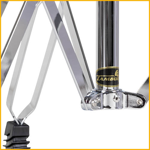Tres secciones de tubo con brazo que desaparece. Patas con doble refuerzo. Ligero y estable.